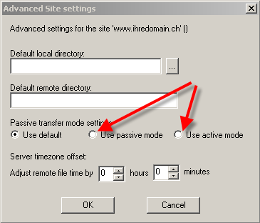 Wenn man alles ergänzt hat mit dem Connect Button die Verbindung zum Server aufbauen. ACHTUNG! Sollte es mit dieser Default Einstellung nicht funktionieren versuchen sie bitte unter Advanced… in den Active / Passive Mode zu wechseln!